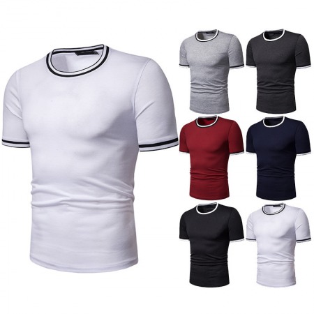 New Summer Men's Short-Sleeved T-Shirt Mens Contrast Striped Slim-Fit Casual T-Shirt