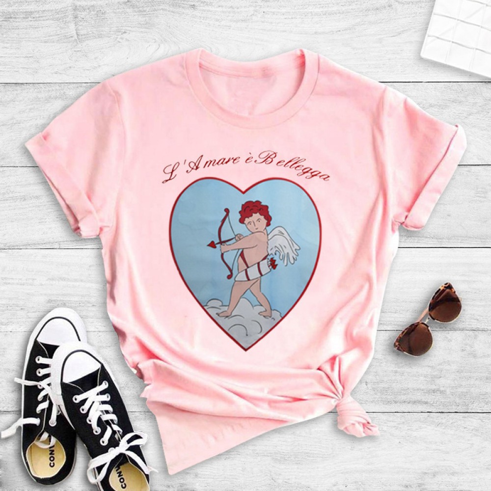 Casual Fashion Street Fashion Cute Angel Love Plus Size Printed T-Shirt Women