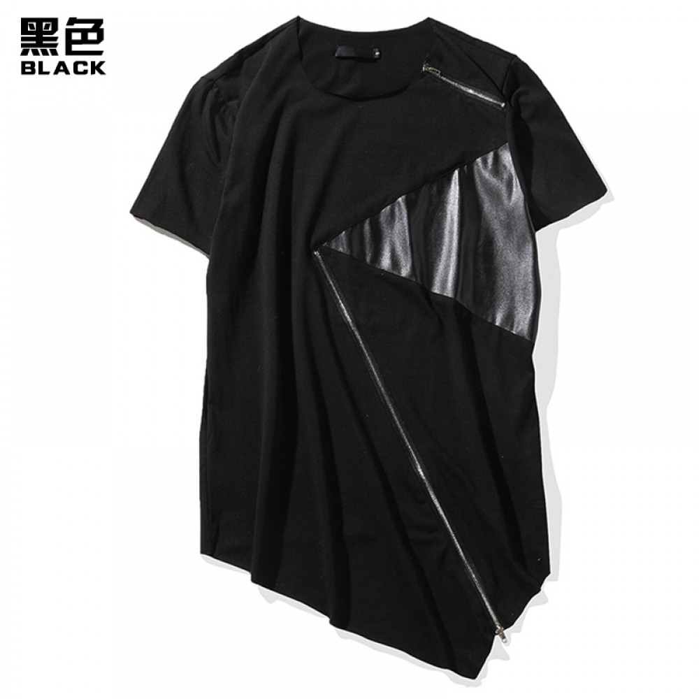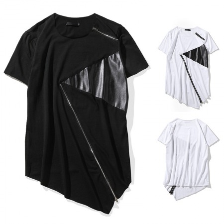 Flat Summer New Men's High Street Hip-Hop Round Neck Fashion Personality Hem Short-Sleeved T-Shirt