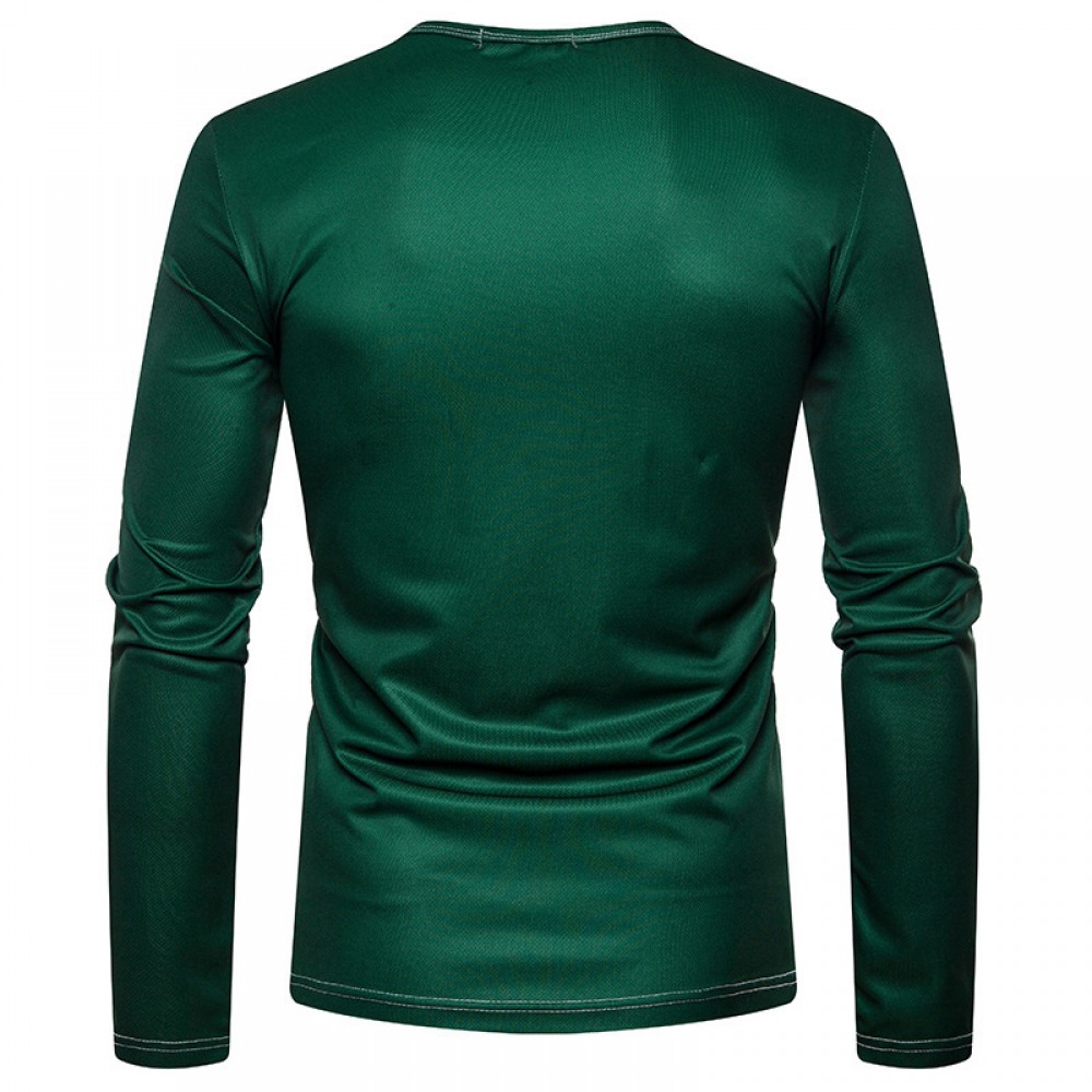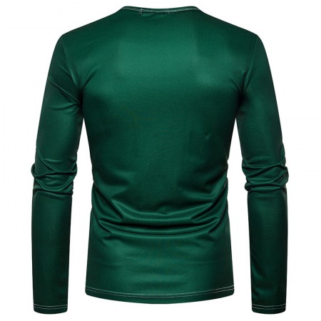New Fashion Men's Henry Collar Long Sleeve Print T-Shirt Polo Shirt