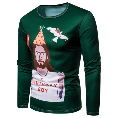 New 3D Personality Printing Fashion Men's Christmas Character Pattern Long-Sleeved T-Shirt