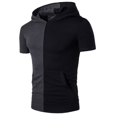 Summer Men's Hip-Hop High Street Fashion Personality Hit Color Hooded Short-Sleeved T-Shirt