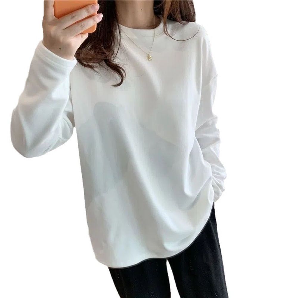 Warm Thickened Double-Sided Round Neck White Bottoming Shirt for Women With Fleece