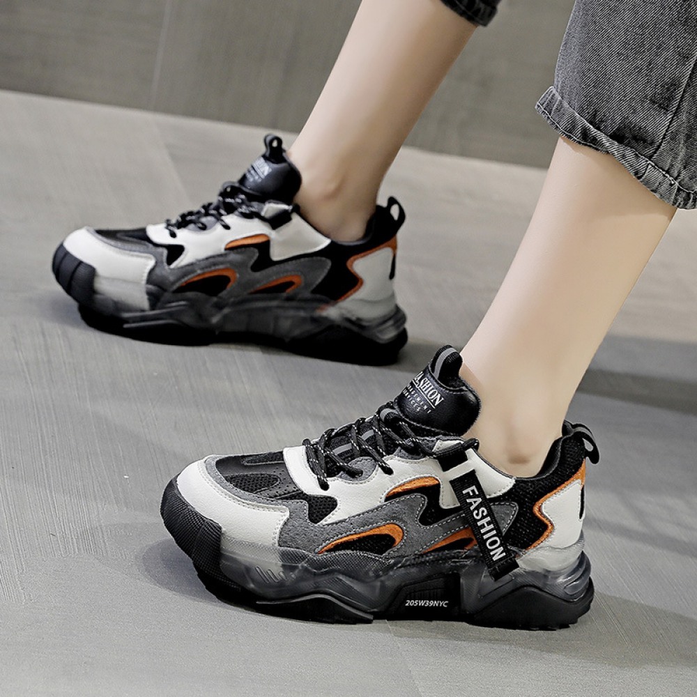 Women's Autumn New Casual Sports Shoes Color Matching Thick-Soled Breathable Shoes Plus Velvet Shoes Women