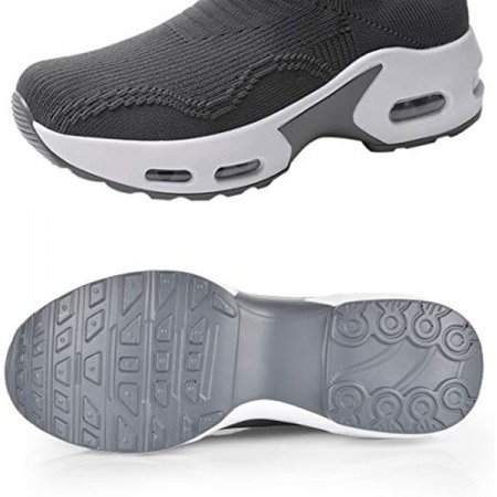 Womens Walking Shoes Sock Sneakers Slip On Mesh Platform Loafers Comfort Wedge Walking Shoes Grey